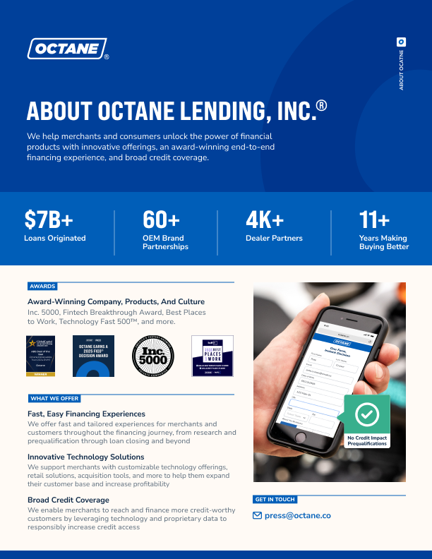 Thus far in 2025, Octane has launched a myriad of new products and technology enhancements, including groundbreaking updates for both merchants and consumers. Notably, Octane strengthened its industry-leading financing portal to provide even faster, easier customer acquisition and closing processes for merchants, helping them reach more buyers and increase profitability. At the same time, customers can access simplified payment options, expedited question resolution, and increased flexibility within the Customer Portal.
